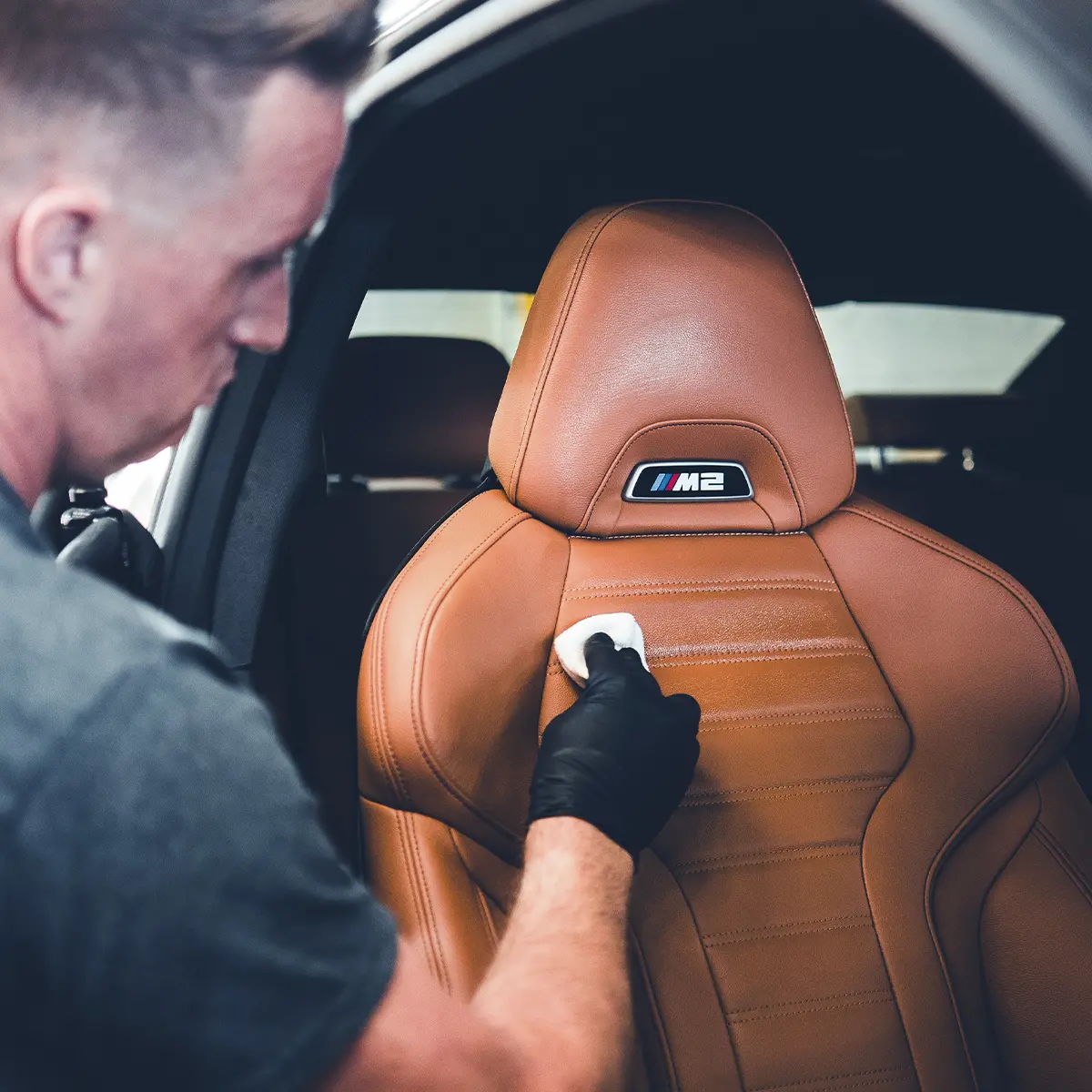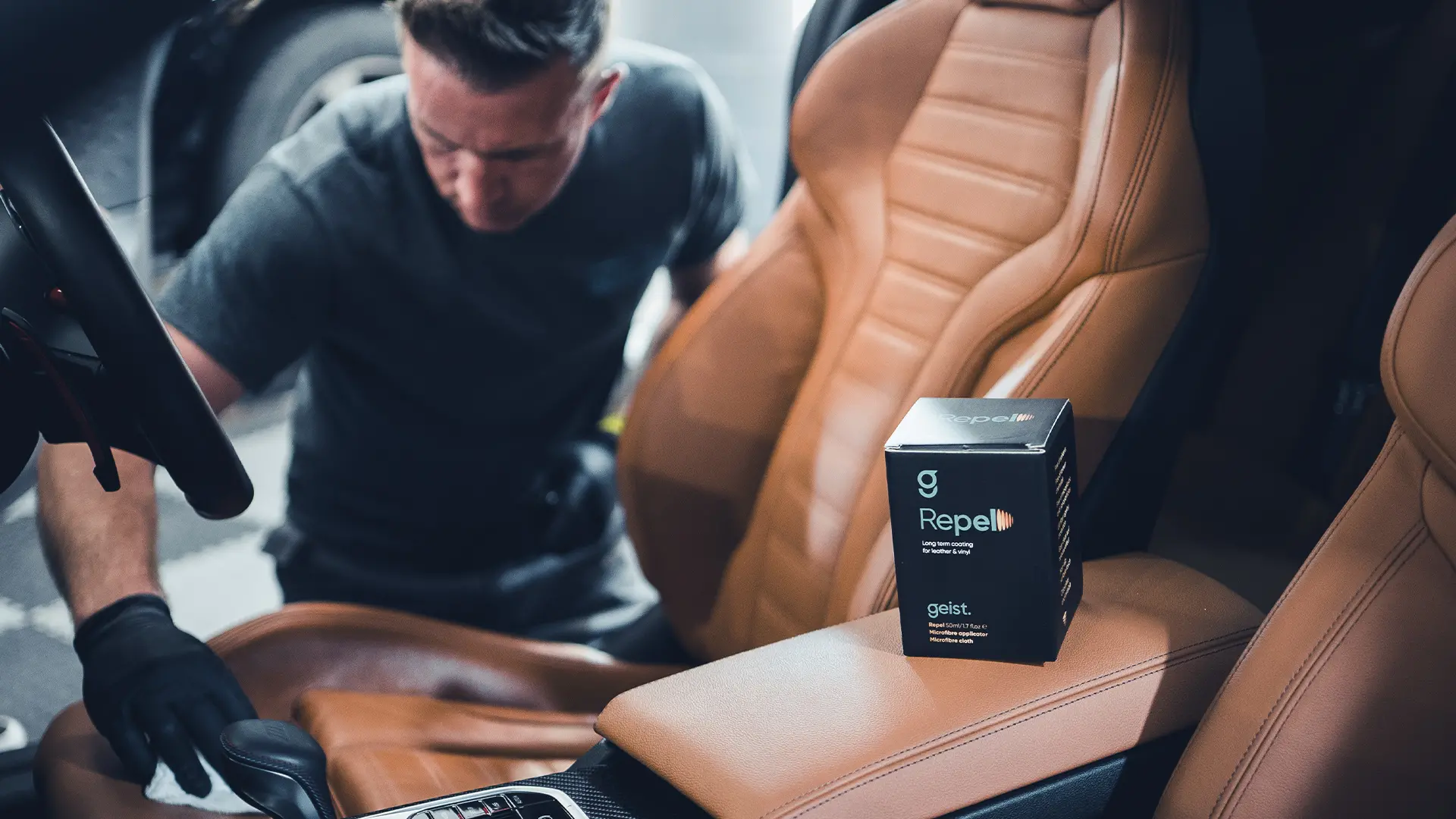ガイストは、レザーに求められるのは「硬さ」ではなく「柔軟性」であるという前提に立ち、柔軟なハイブリッドマイクロポリマーによって保護層を形成します。レザー本来のしなやかさや触感を損なわず、シートの機能性をできる限り維持しながら、汚れや摩耗に対する耐性を向上させる設計です。見た目だけを綺麗にするのではなく、座った瞬間の質感、長時間座ったときの快適性、日常使用の積み重ねまで含めて“自然に守る”。このバランス感が、ガイストのレザーコーティングの大きな価値です。