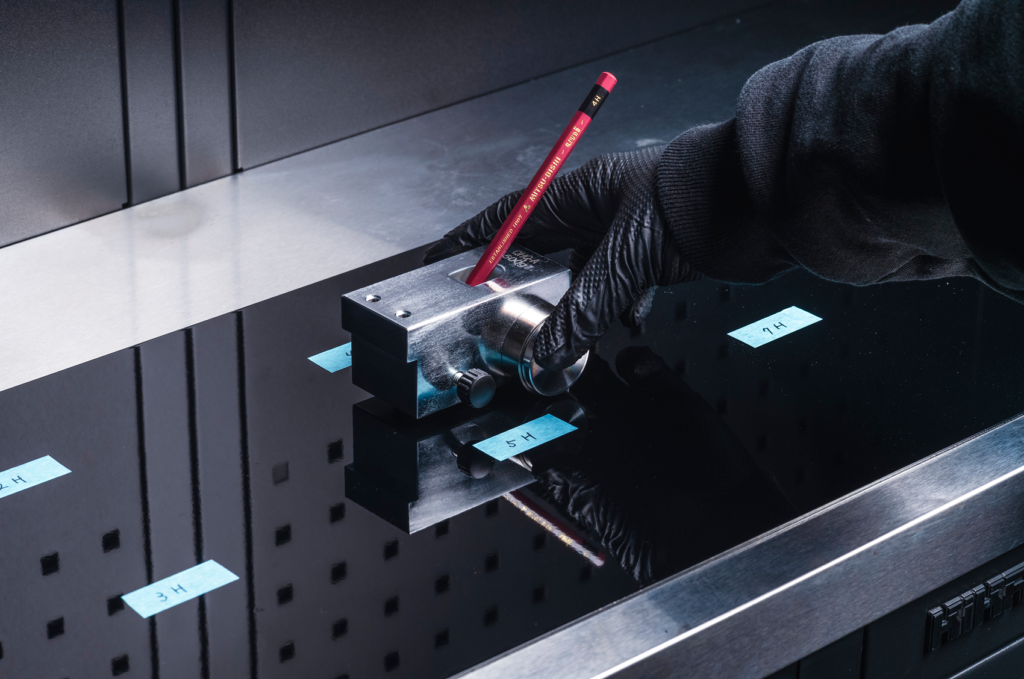 それではここから、前項までで解説してきた内容について、実際に引っかき硬度(鉛筆法)による測定を行い、検証結果を確認していきます。