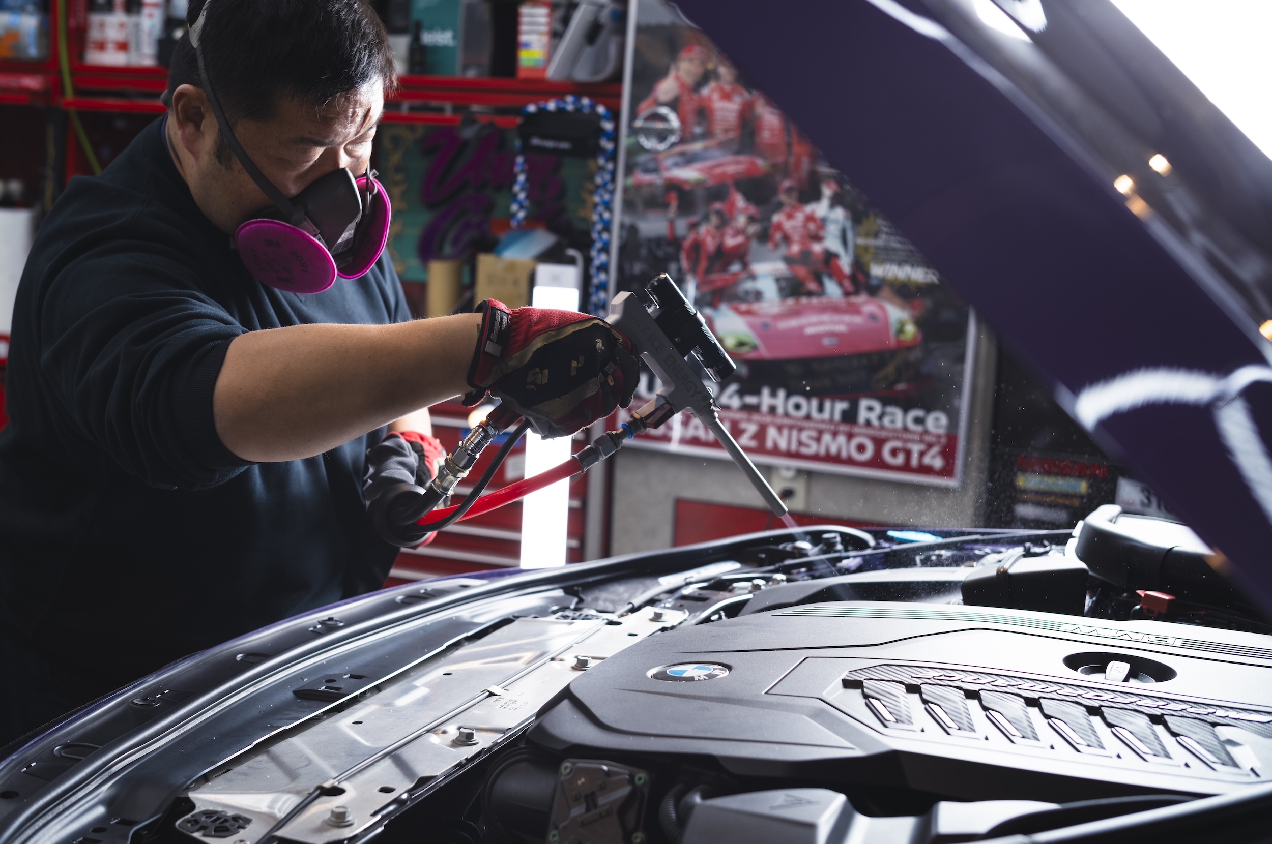 エンジンルームの洗浄についても、大きな変化があった。カバーを外した状態でドライアイス洗浄を行うことで、水を使わず、安全性とクオリティを両立した洗浄が可能になった。電装部品への影響を最小限に抑えつつ、見た目としても納得のいく仕上がりを実現できているという。これらの変化に共通しているのは、「今まで避けていた」「やりたくても手間がかかりすぎた」作業が、現実的な選択肢になったという点である。作業時間は短縮され、スタッフの負担も軽減。それでいて、仕上がりの精度は確実に向上している。