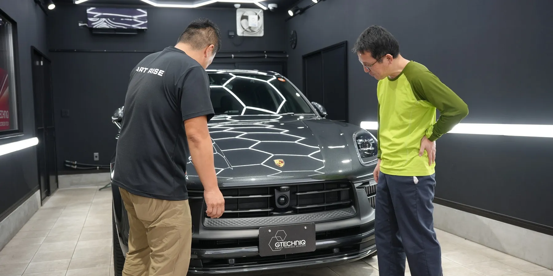 実は今回が初めてのGTECHNIQ(ジーテクニック)の施工ではない。以前に所有していたポルシェ・ケイマンにも同ブランドのセラミックコーティングを施工しており、今回で2台目の依頼となる。ブランドへの信頼が着実に積み重なっているという。